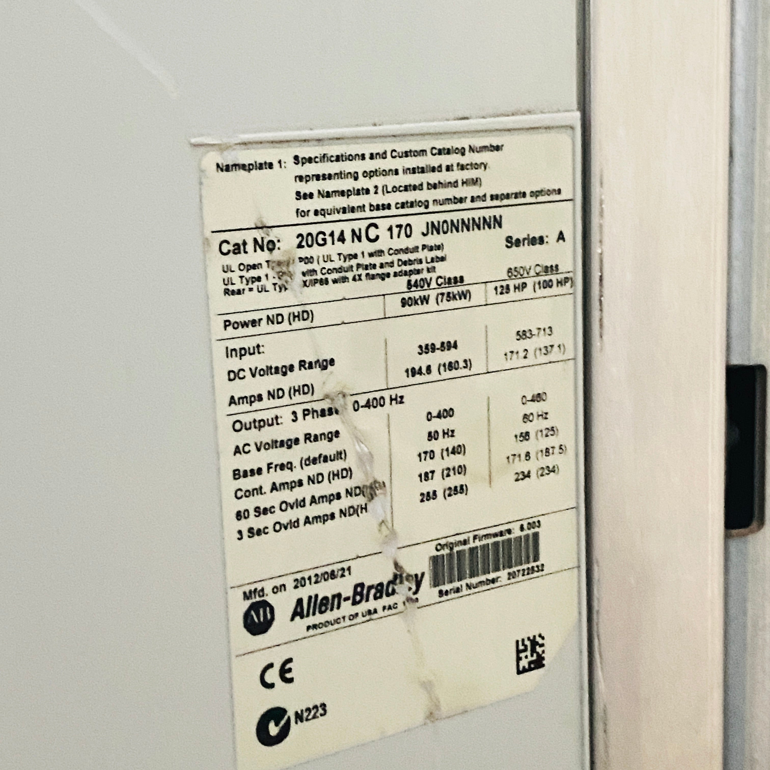 Allen Bradley 20G14NC170JN0NNNNN Powerflex 755 Ac Vfd Drive