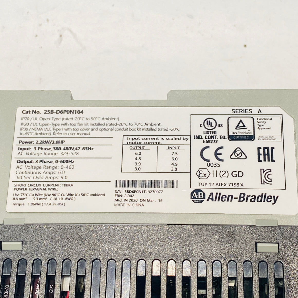 Allen Bradley 25B-D6P0N104 PowerFlex 525 AC Drive