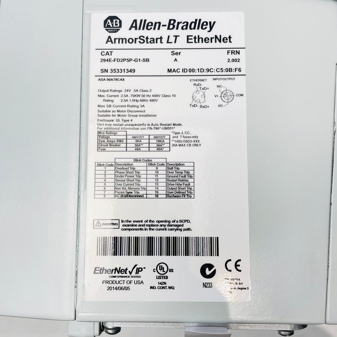 Model Number: 294E-FD2P5P-G1-SB