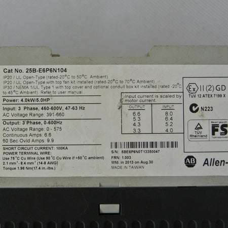 Allen Bradley 25B-E6P6N104 Inverter 5kW Input 460-600v