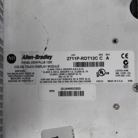 Allen Bradley 2711P-RP1A Panel View Plus 1250 Color Touch Display Module
