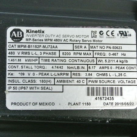 Allen Bradley MPM-B1152F-MJ72AA motor